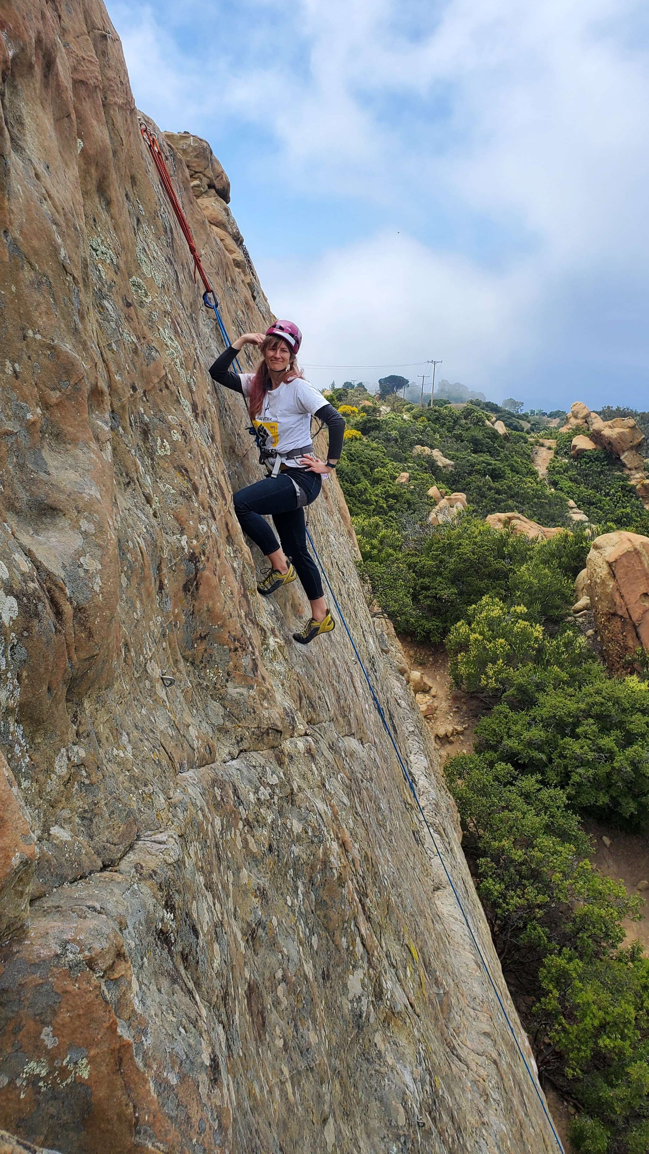 I’ve climbed since 2018, both indoors and outdoors. Indoors, I boulder V4-V5 and above; I top-rope 11a-b and up; and I lead 11a and up.
